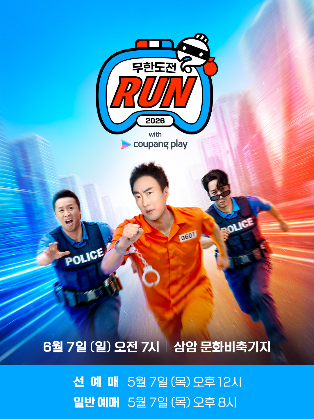 ‘2026 무한도전 Run with 쿠팡플레이’는 쿠팡플레이 모바일 앱에서 단독 판매하며, 그 외 경로로는 판매하지 않습니다.